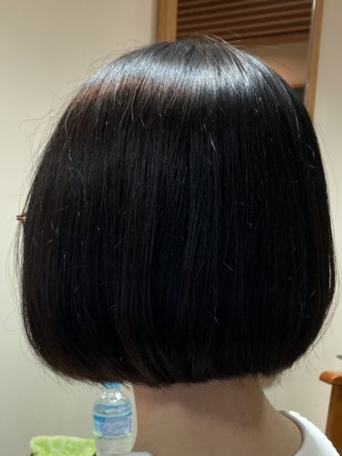 肩下の長さからばっさり顎ラインまでカットしました。 毛量が多いのでしっかり毛量調整もさせて頂きま…