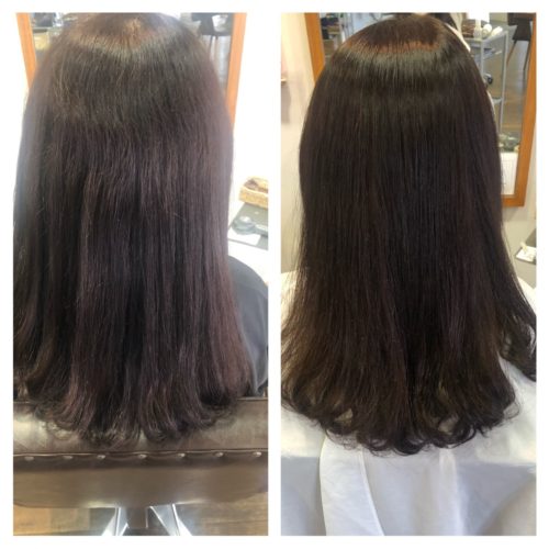 お仕事復帰までの間、遊べるカラーをしたいとのご要望でした。 この方法なら楽しんだ後ブリーチ部分を…