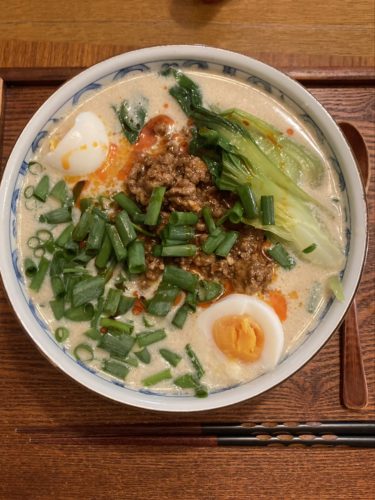 豚骨と鶏ガラと諸々煮込んで坦々麺のスープから手作りしました。 休みの日の料理は趣味の域でこだわっ…