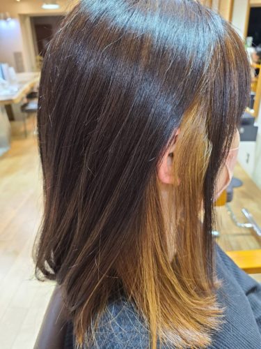 こんにちは! 今回は、初めてインナーカラーをしたお客様写真です。 ベージュに少しピンクを混ぜた派手すぎないイン…