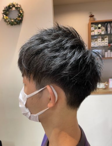 いつもご来店頂いている大学生のメンズカットです。 髪質が直毛で硬めなのですが、短く…