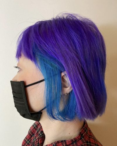 ブリーチ後のヘアーにオンカラーしました。 インナーブルーの表面パープルです。 &n…