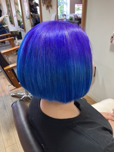 ブリーチからのぉーー オンカラーです。 パープルから毛先に向かってブルー。 &nb…