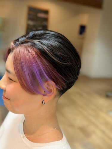 こんにちは!武蔵小金井店の工藤です。 画像はフェイスラインをブリーチして塩基性カラーでパープルを…