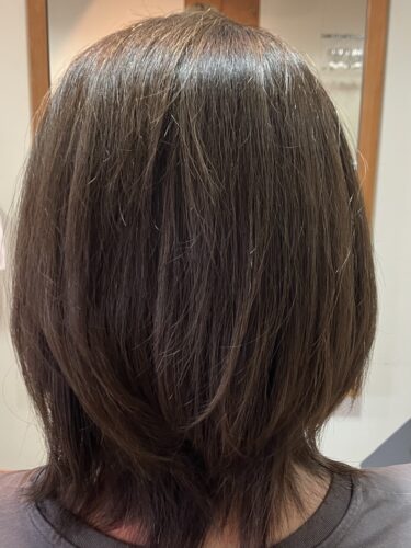 白髪率70%ぐらいのお客様です。 赤みを抑えた色で白髪をカバーしたいとのことでした。  …
