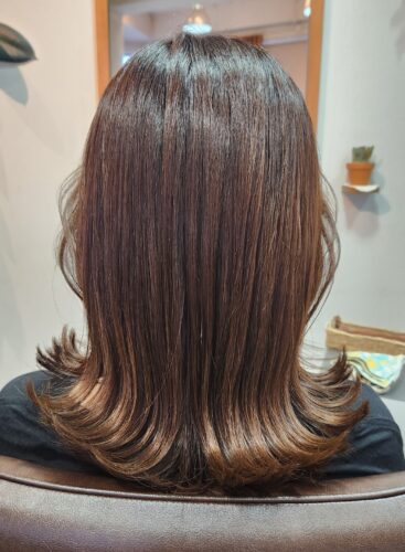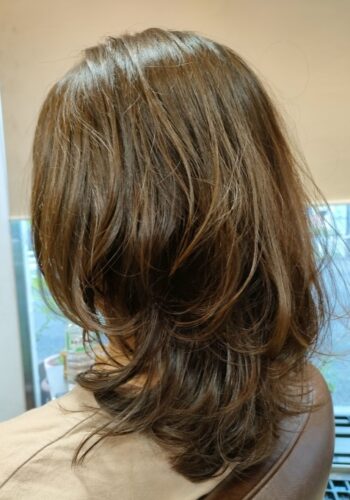こんにちは! 所沢店の昼田です ロングからミディアムにカットしてハイレイヤーでしっかり動きを出しました コテで…