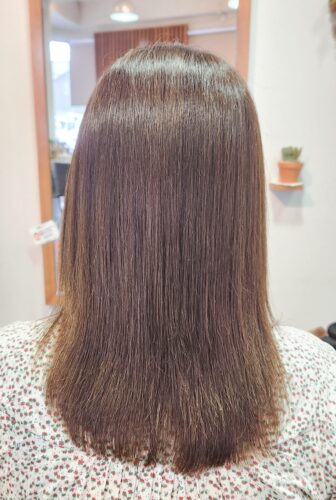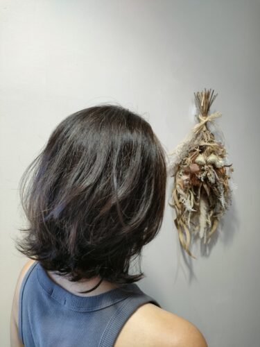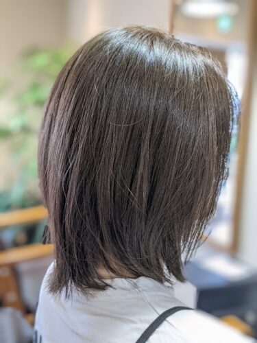 こんにちは、林です。 先日友人のカラーカットをしました。 朝、楽なスタイルという事で はねにくい長さだけど結べ…