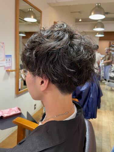 メンズのゆるめパーマスタイルです。 マッシュショートにはこれくらいのゆるめのパーマ…