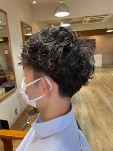 メンズのショートパーマスタイルです 横とサイドは刈り上げて爽やかなイメージです。 …