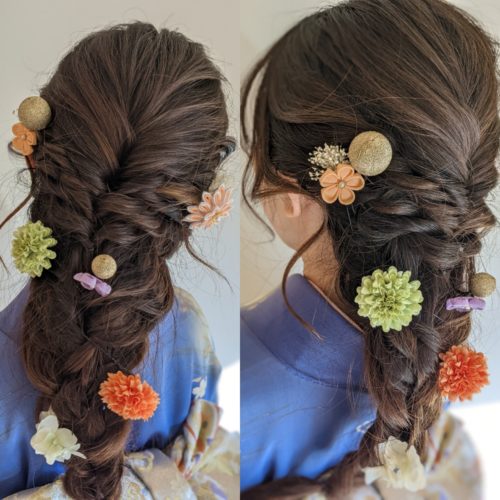 こんにちは!武蔵小金井店の工藤です。 昨年に引き続き今年も水引や金箔など和のアイテムを使ったヘア…